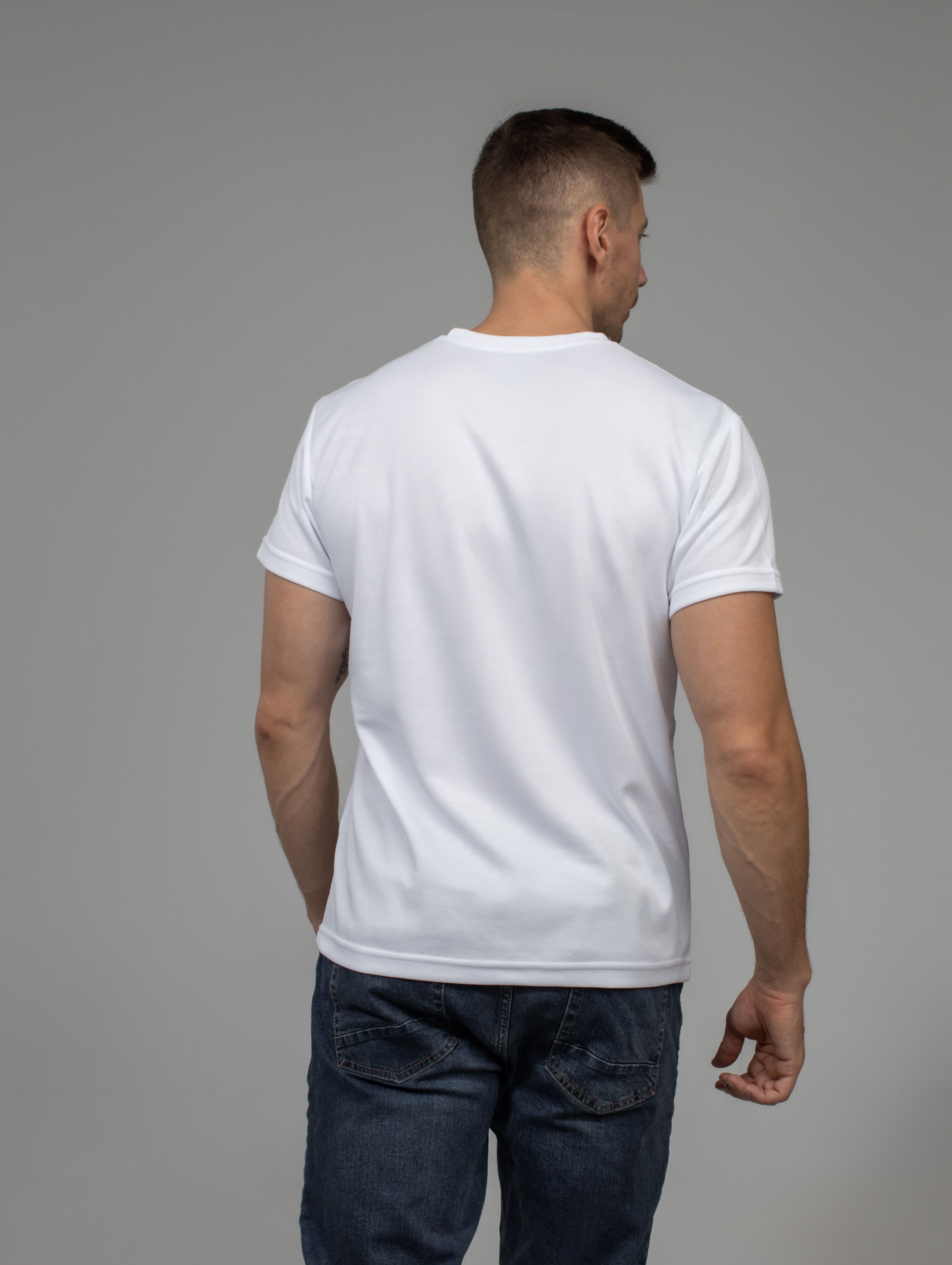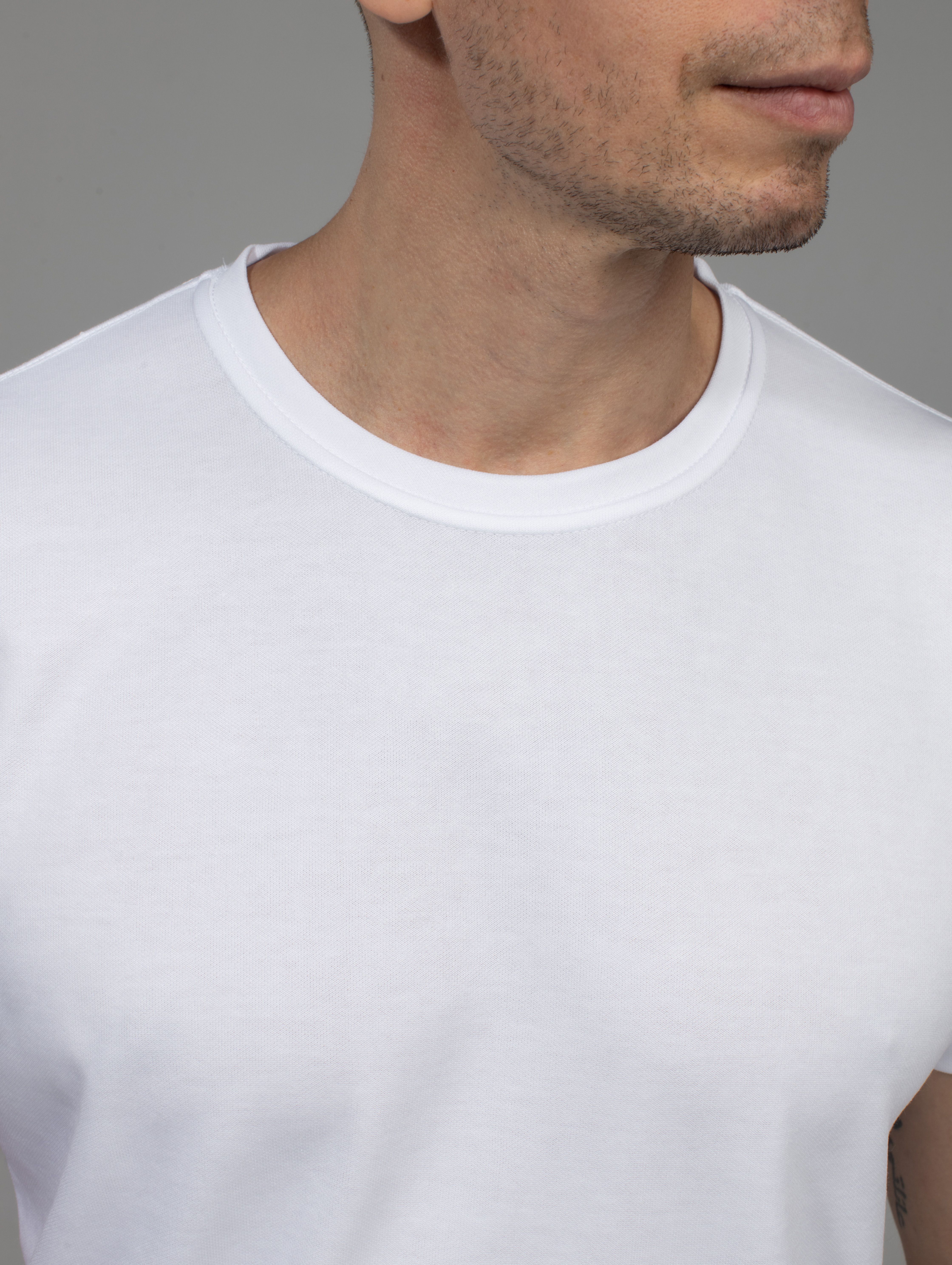 Мужская футболка прямого кроя, выполнена в классическом стиле с круглой горловиной и втачным рукавом, что позволяет сочетать с различными элементами гардероба. Горловина сделана из основного полота. Для сохранения формы при носке и стирке, линия плеча и ворот имеют усиленные швы, обработанные бейкой, за счет этого они становятся более крепкими и при этом не натирают.