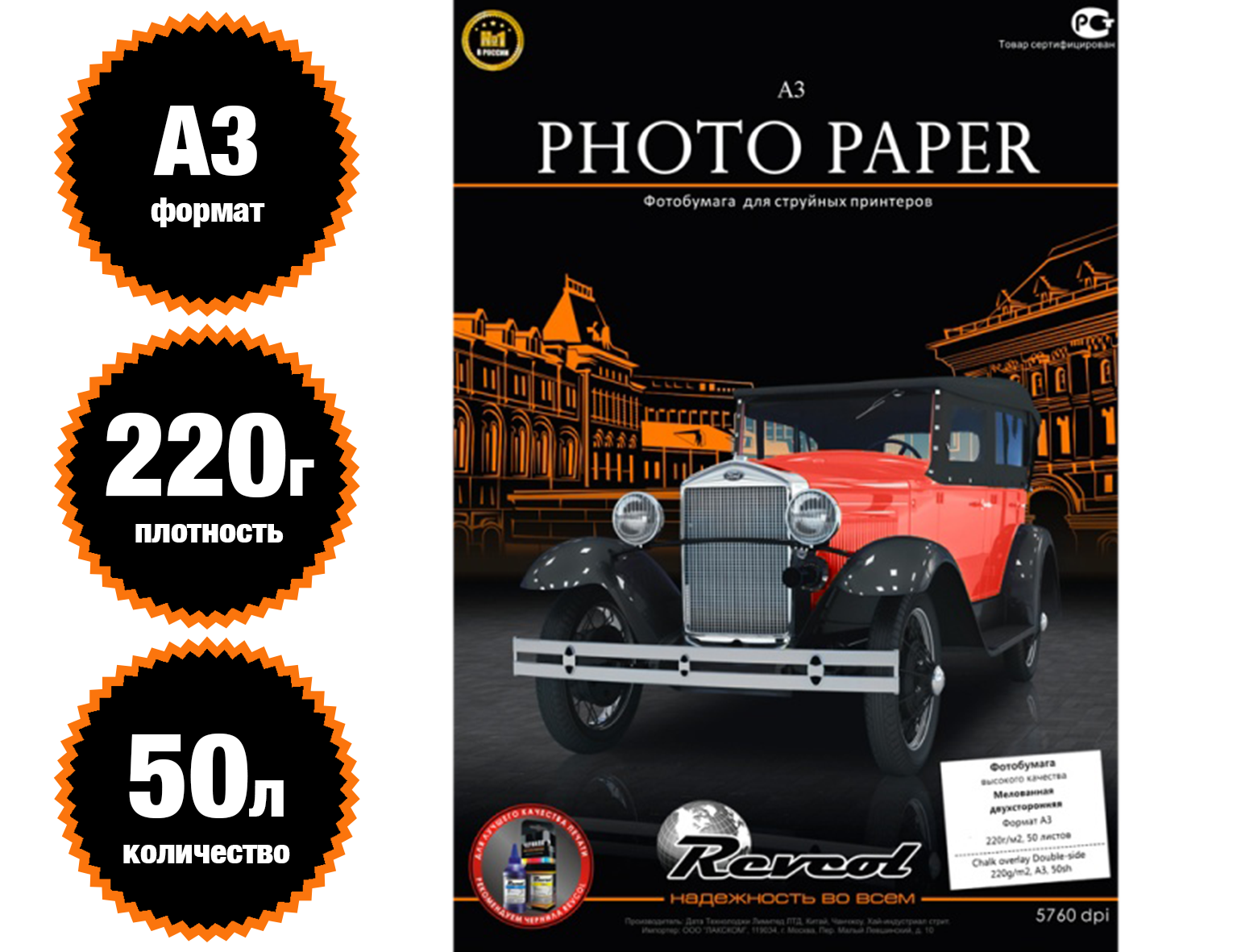 Плотность220 грФоматА3ПоверхностьматоваяКоличество листов50ОдносторонняяестьБрендREVCOL