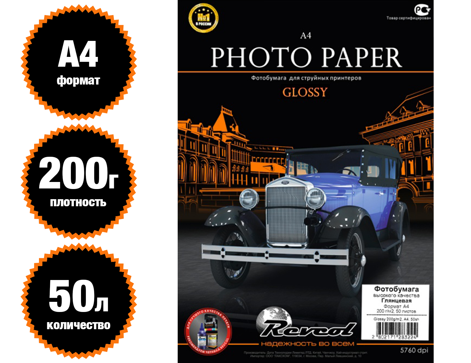 Плотность200 грФоматА4ПоверхностьглянцеваяКоличество листов50ОдносторонняяестьБрендREVCOL