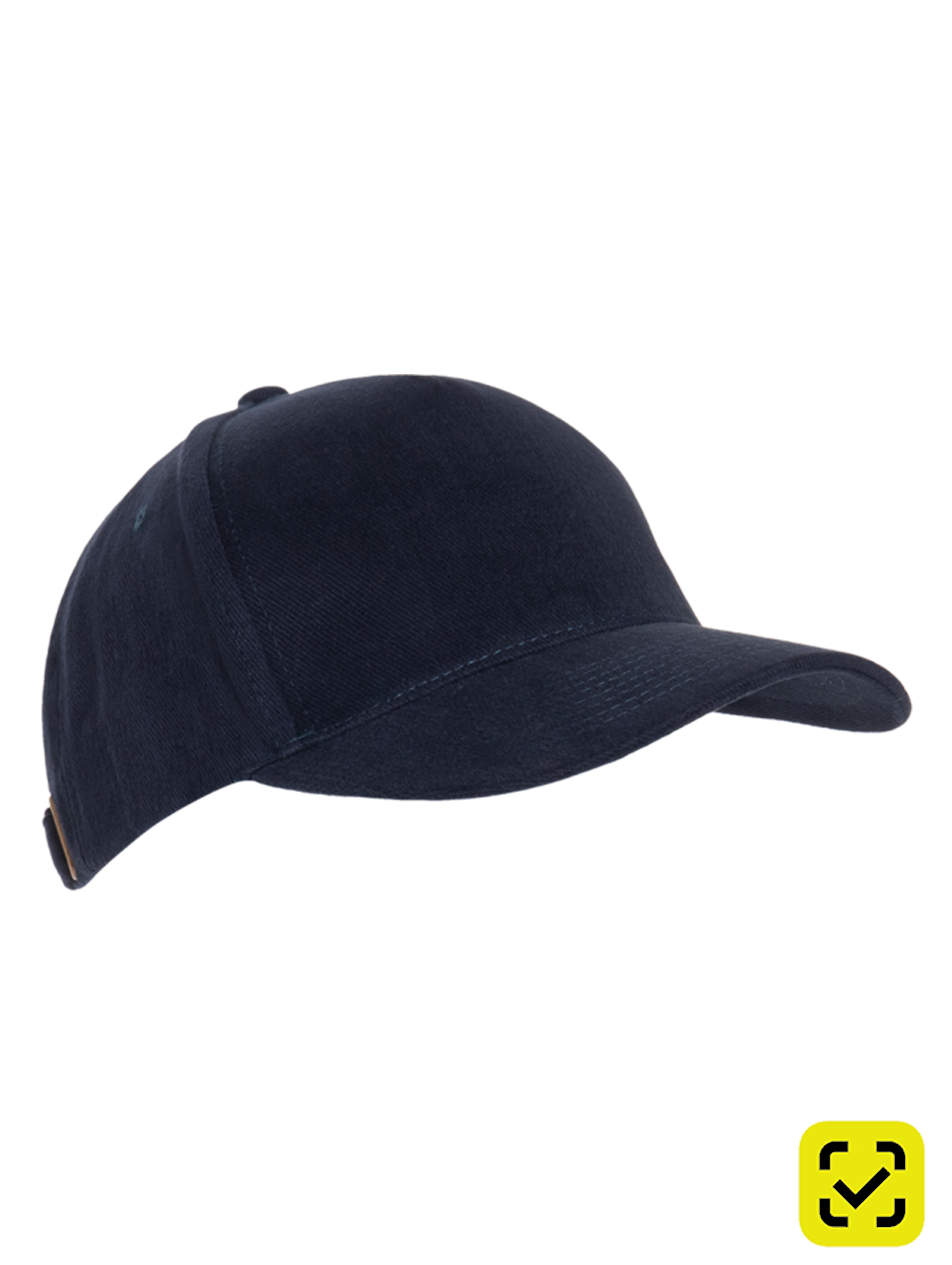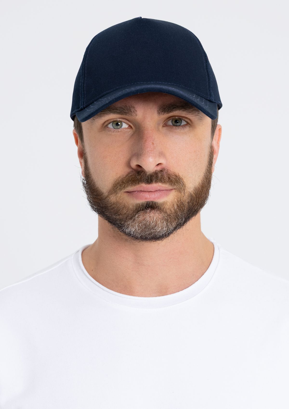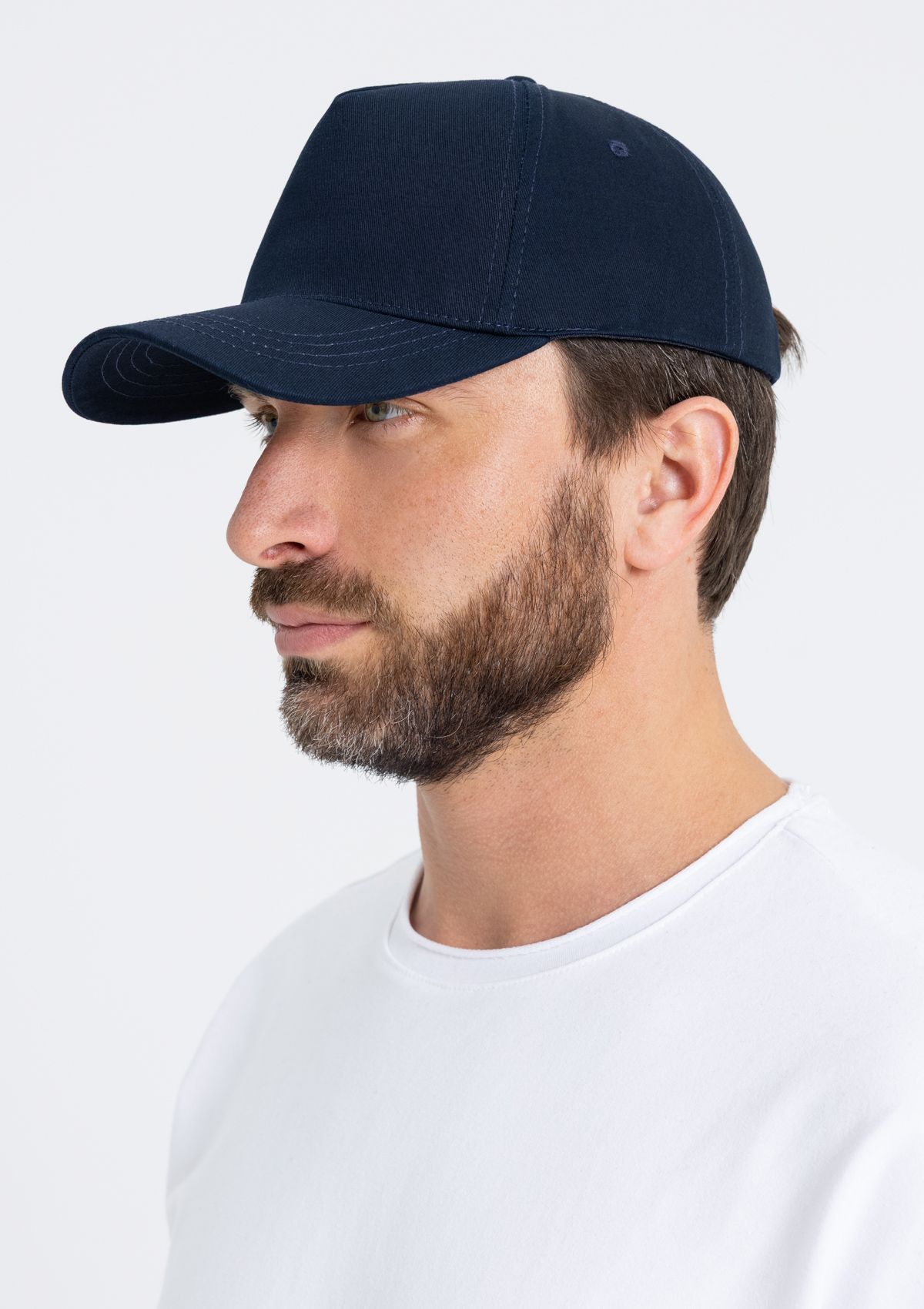 Бейсболка-пятиклинка без лобового шва с изогнутым жестким козырьком. Посадка регулируется ремешком на металлической застежке.